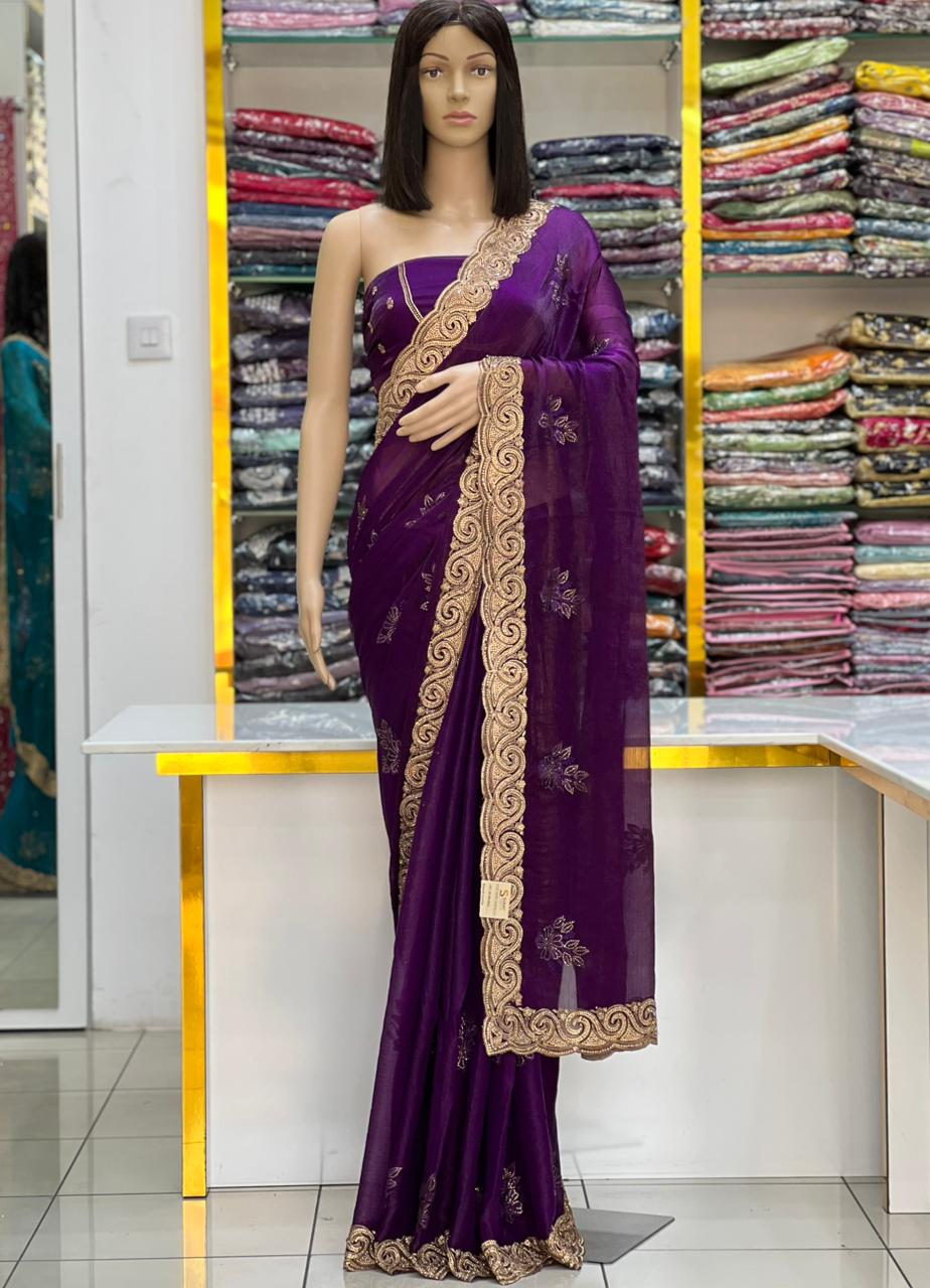 Step into timeless elegance with our exquisite saree collection. Each piece is crafted from a soft, flowing fabric that drapes beautifully, making it perfect for weddings, festivals, parties, and special occasions. The sarees are universally designed with a stunning, intricate gold-colored border that runs along the edges, lending a rich, festive appeal.