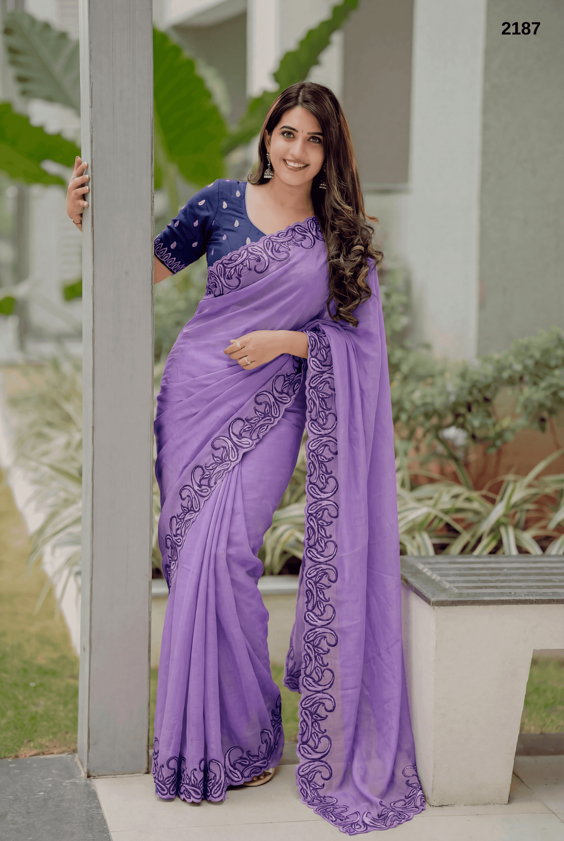 Premium Crunchy Chiffon Saree with Elegant Embroidery Border